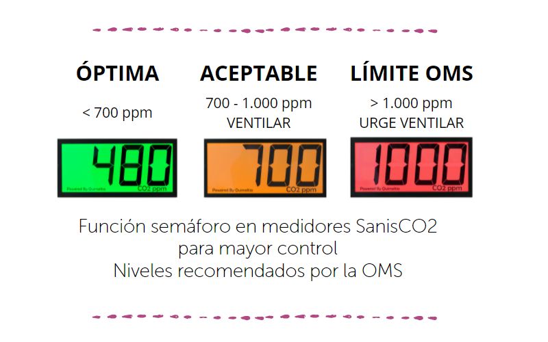 Con la medición de CO2 observaremos la acumulación de posibles aerosoles nocivos y podremos actuar para reducirlos (mediante ventilación, purificadores de aire, extracción de aire...). Es importante saber que la medición, indicada en ppm (partes por millón) no indica la cantidad de virus que hay en el ambiente, sino que a mayor concentración de CO2, el riesgo de contagio es mayor en caso de que haya alguien contagiado/a.